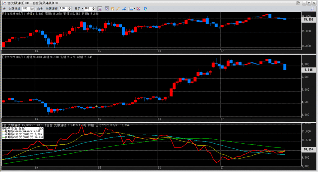 下記に金白金鞘の移動平均線のチャートを貼り付けています。