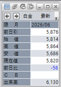 5,500円を超えてきましたので、白金高騰が続く可能性が高まっています。