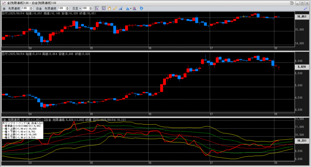 金白金の鞘をボリンジャーバンドで見ていきます。