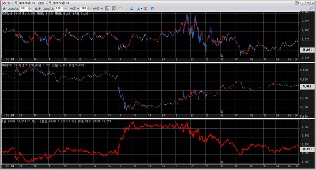 下記に金白金鞘の移動平均線のチャートを貼り付けています。