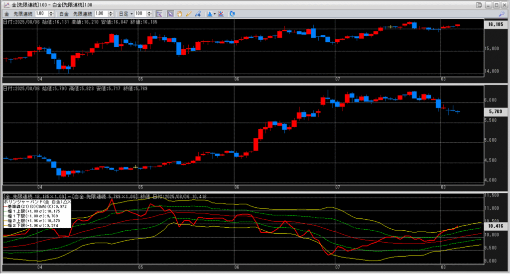金白金の鞘をボリンジャーバンドで見ていきます。