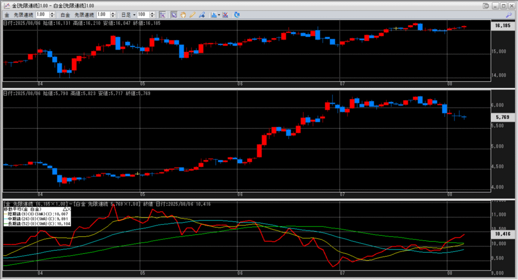 下記に金白金鞘の移動平均線のチャートを貼り付けています。