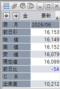 併せて、鞘拡大の仕掛け金ミニ買い1枚-白金ミニ売1枚の1組も保持しています。