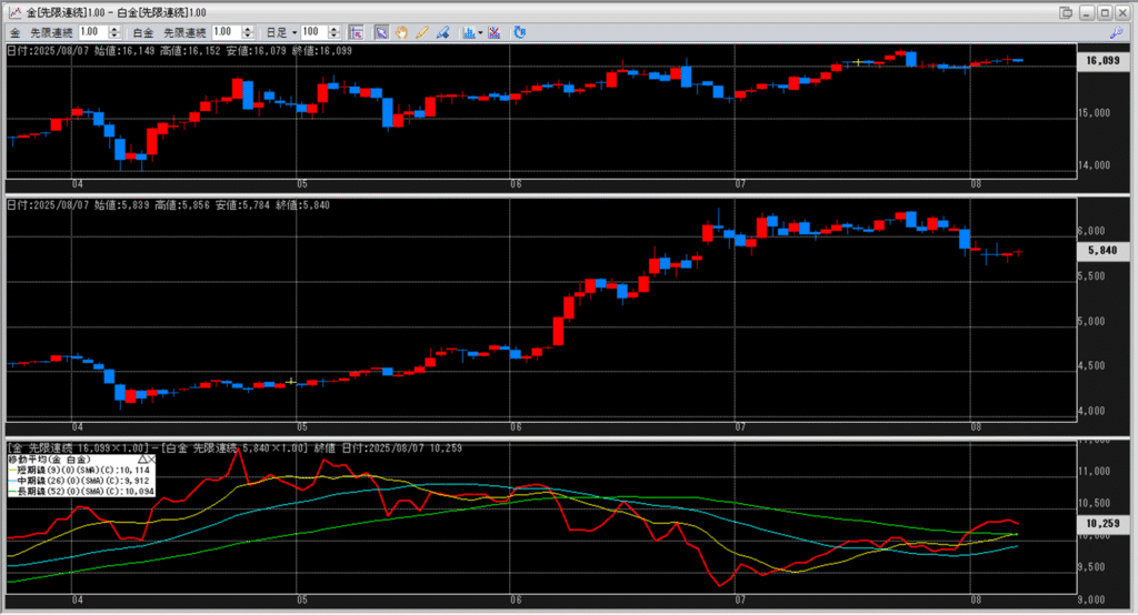 下記に金白金鞘の移動平均線のチャートを貼り付けています。