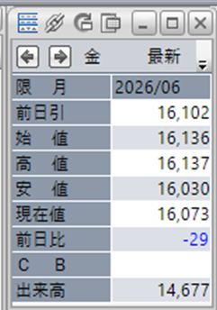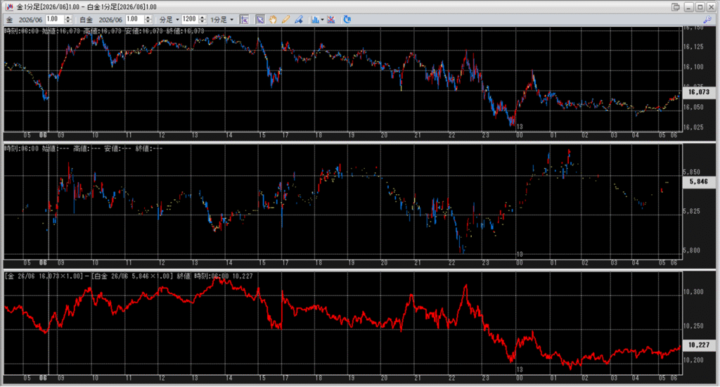 併せて、鞘拡大の仕掛け金ミニ買い1枚-白金ミニ売1枚の1組も保持しています。