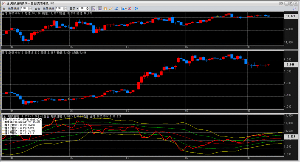 金白金の鞘をボリンジャーバンドで見ていきます。