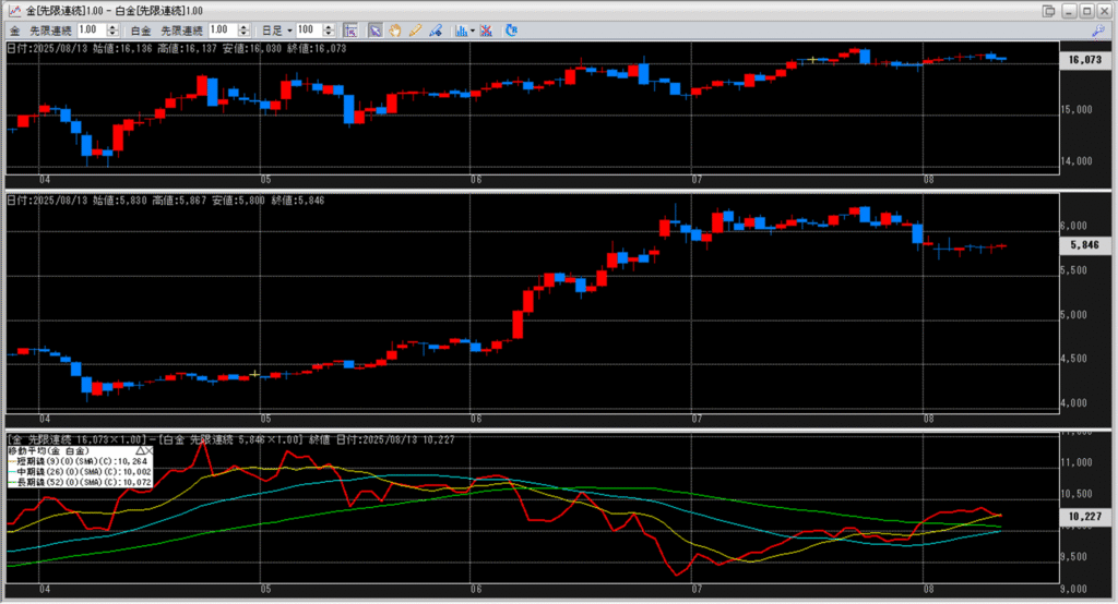 下記に金白金鞘の移動平均線のチャートを貼り付けています。