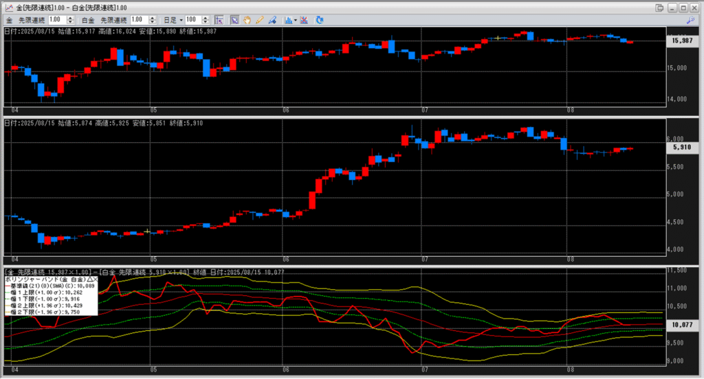 金白金の鞘をボリンジャーバンドで見ていきます。