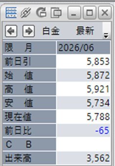 中:大阪取引所 白金 2026年6月限 1分足