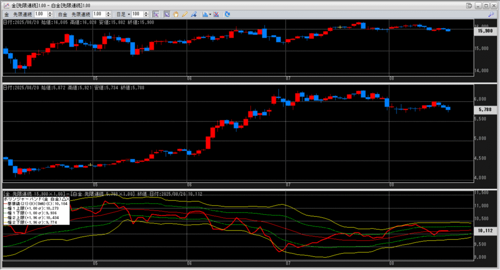 金白金の鞘をボリンジャーバンドで見ていきます。