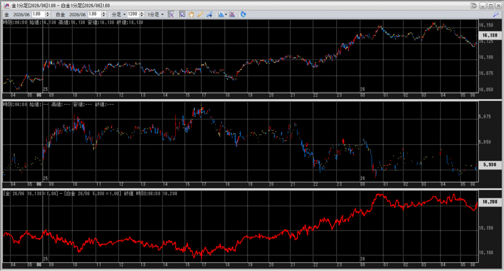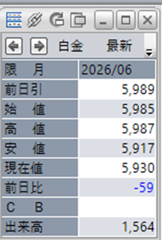 中:大阪取引所 白金 2026年6月限 1分足