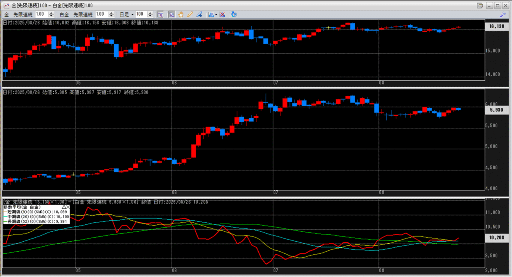 金白金の鞘の移動平均を見ていきます。