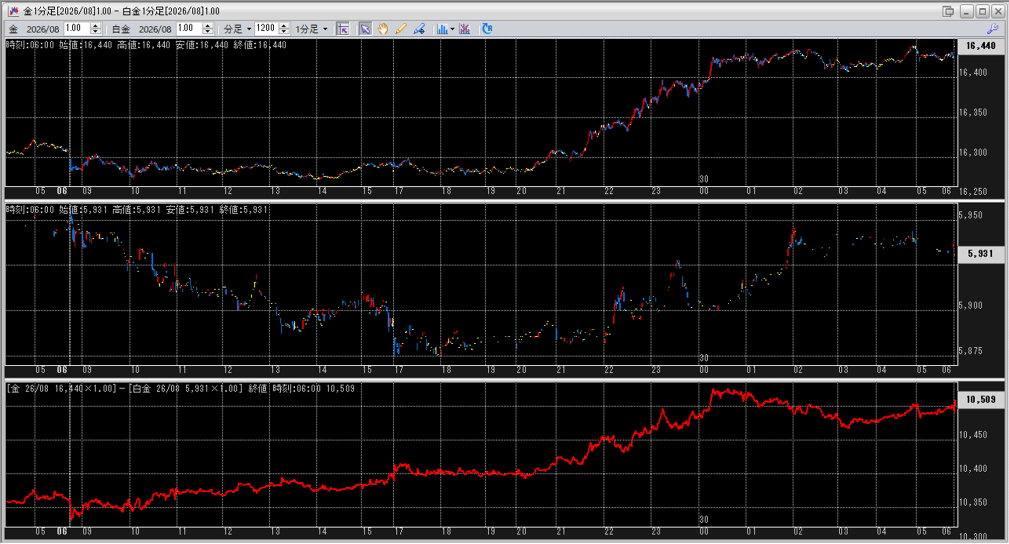 上:大阪取引所 金 2026年8月限 1分足