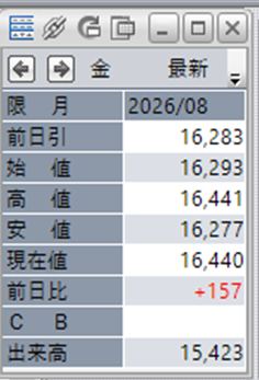 金価格は、6:00時点での終値は16,440円となっています。
