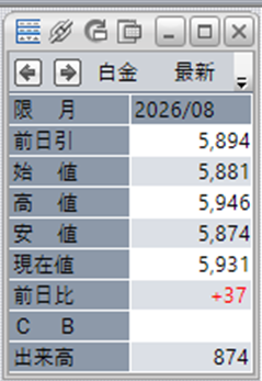 中:大阪取引所 白金 2026年8月限 1分足