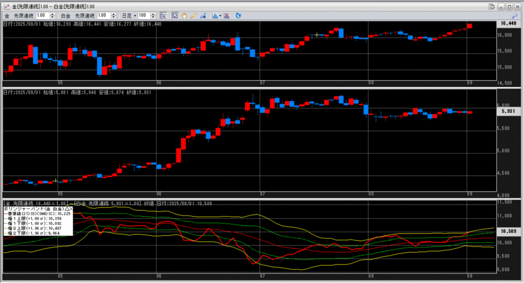 金白金の鞘をボリンジャーバンドで見ていきます。