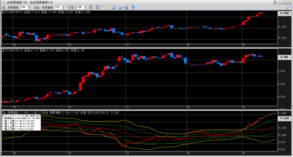金白金の鞘をボリンジャーバンドで見ていきます。