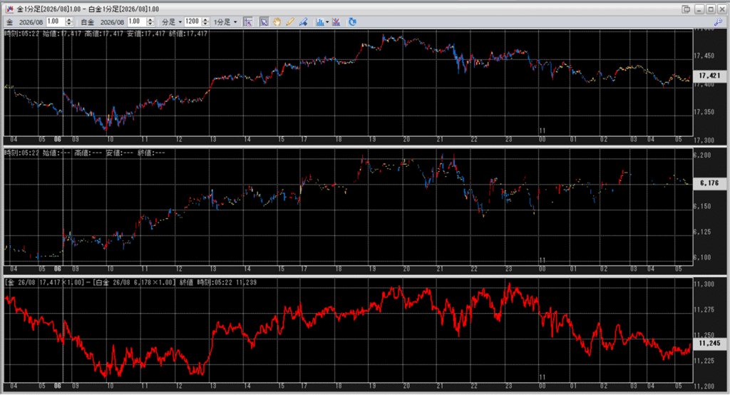 本日は金白金鞘は縮小していますが、金白金鞘の史上最大値に近い状態は続いています。