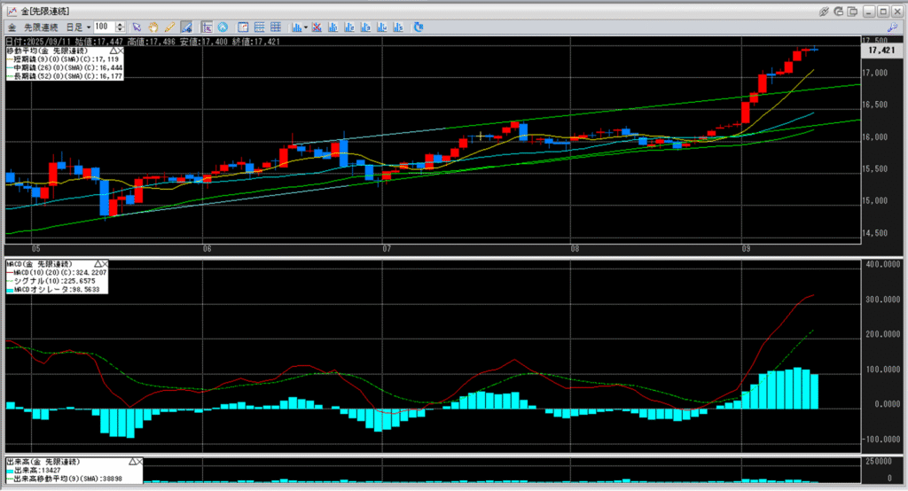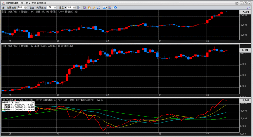 下記に金白金鞘の移動平均線のチャートを貼り付けています。