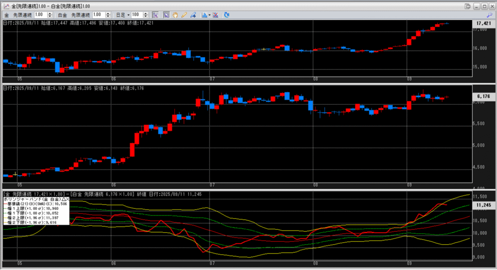 金白金の鞘をボリンジャーバンドで見ていきます。