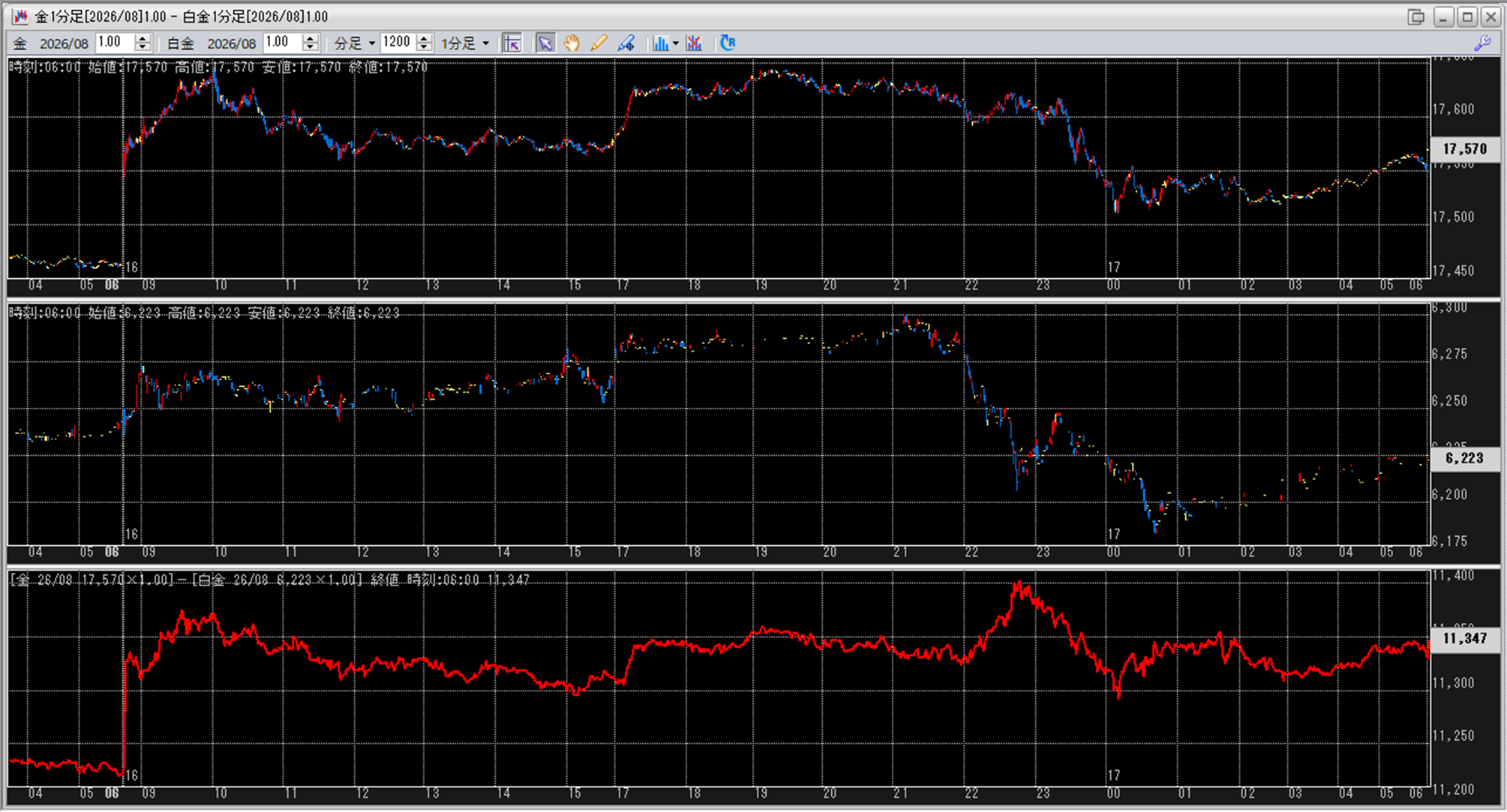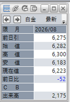 中:大阪取引所 白金 2026年8月限 1分足