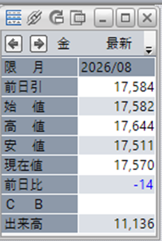 上:大阪取引所 金 2026年8月限 1分足