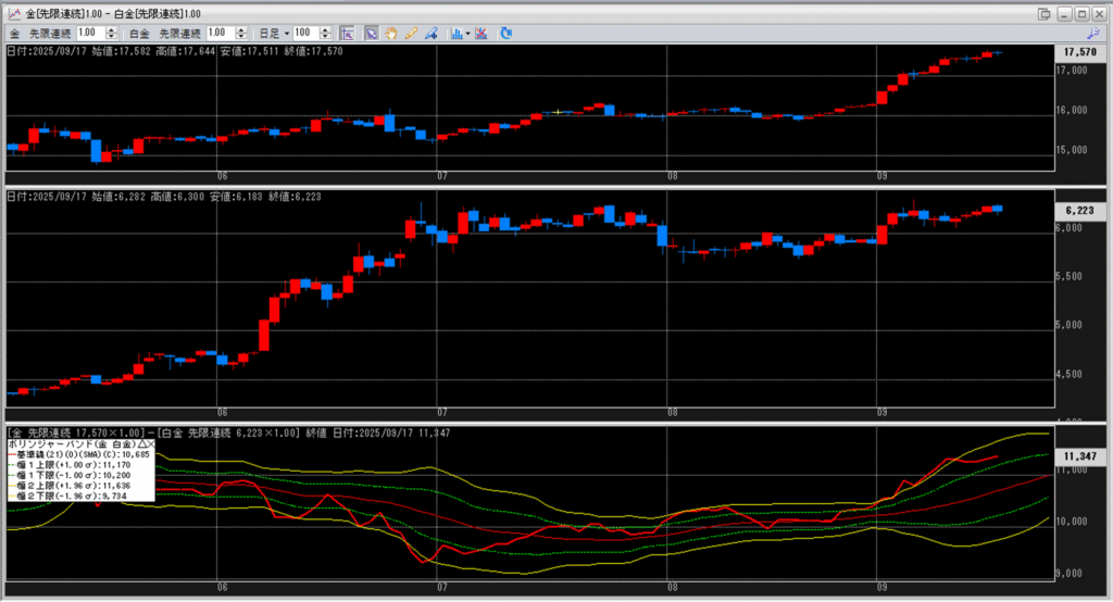 金白金の鞘をボリンジャーバンドで見ていきます。