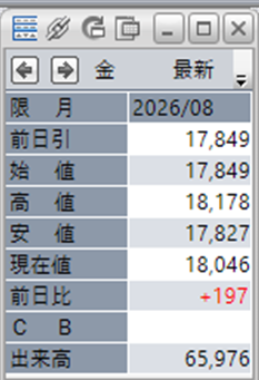 金単体で見ると、9/22 15:45比で+197円となっております。