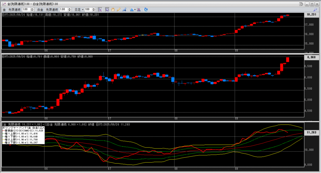 金白金の鞘をボリンジャーバンドで見ていきます。