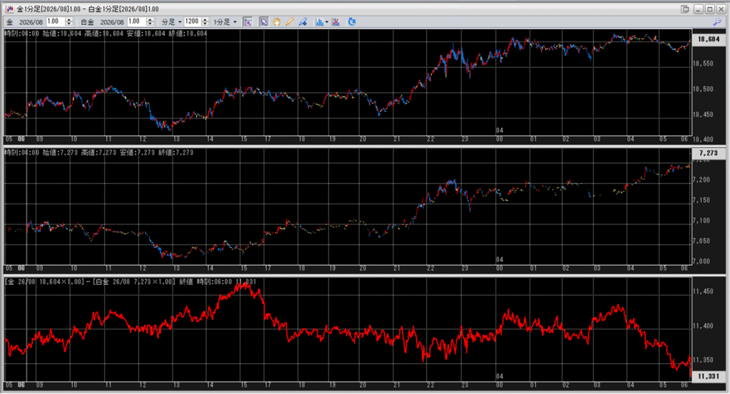 中:大阪取引所 白金 2026年8月限 1分足