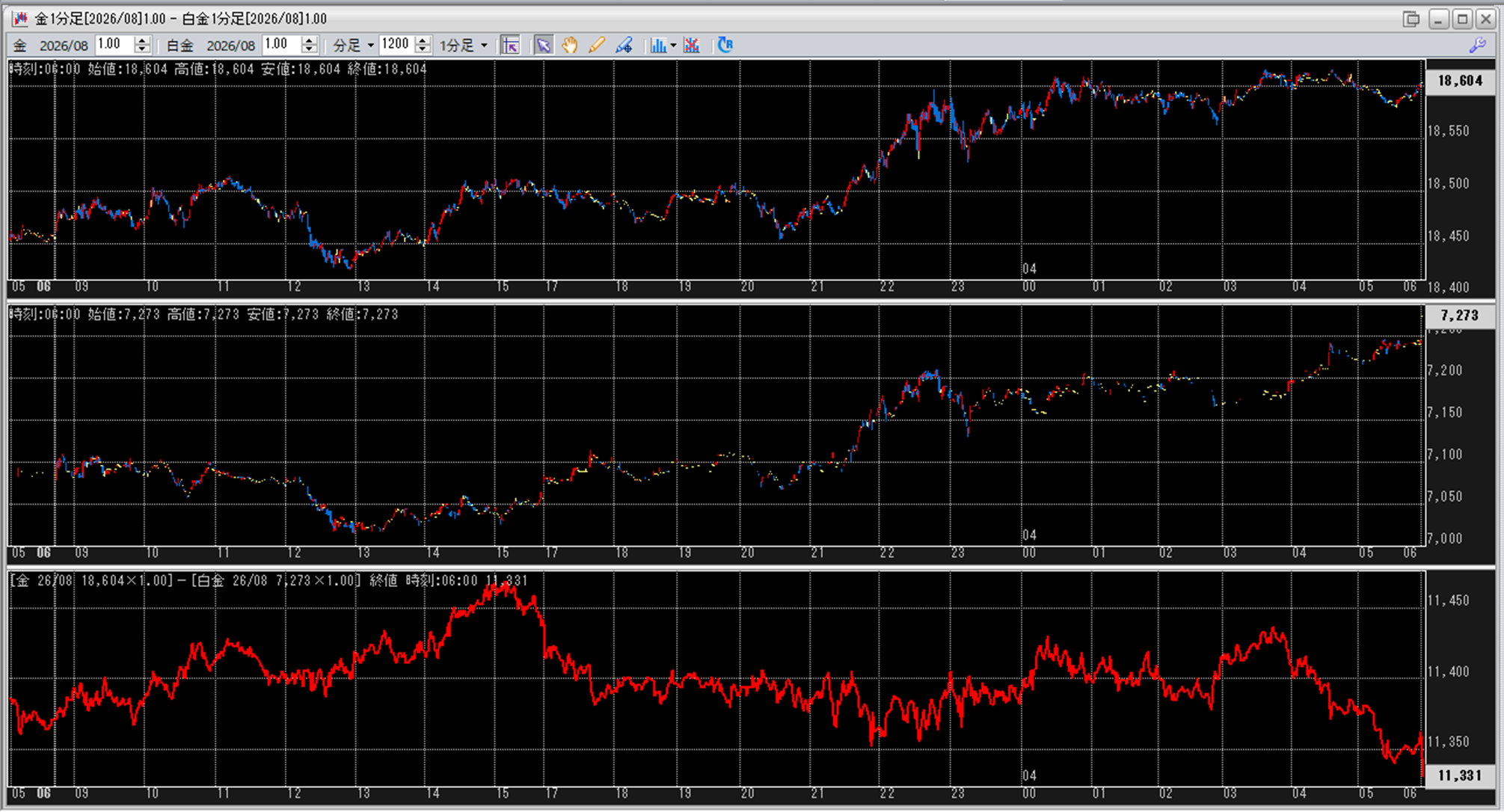 上:大阪取引所 金 2026年8月限 1分足