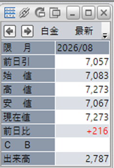 白金単体で見ると、前日比で+216円となっております。