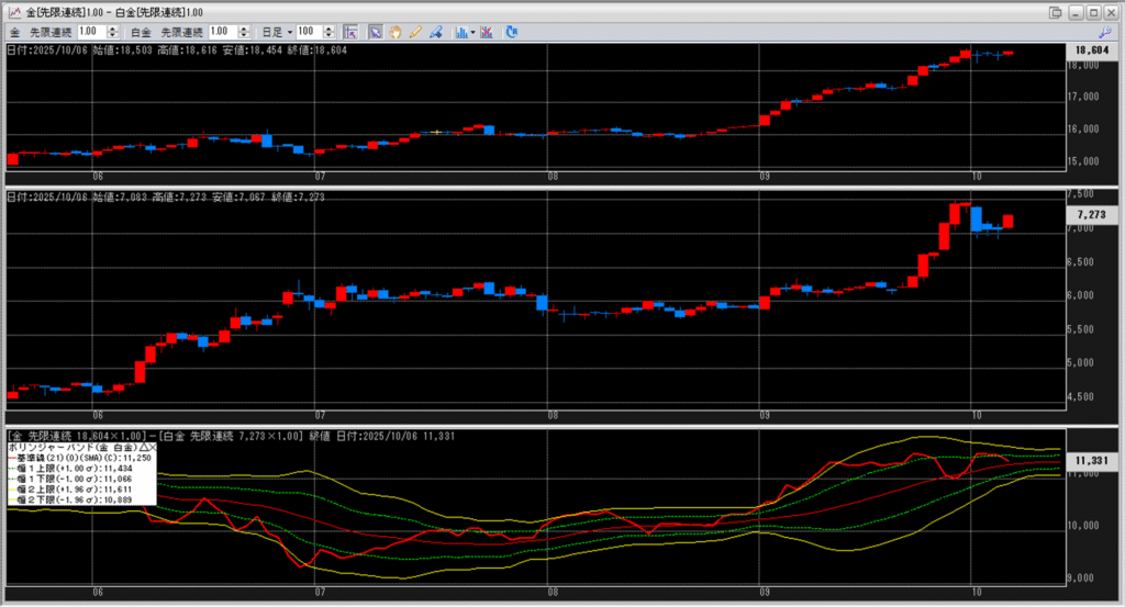 金白金の鞘をボリンジャーバンドで見ていきます。