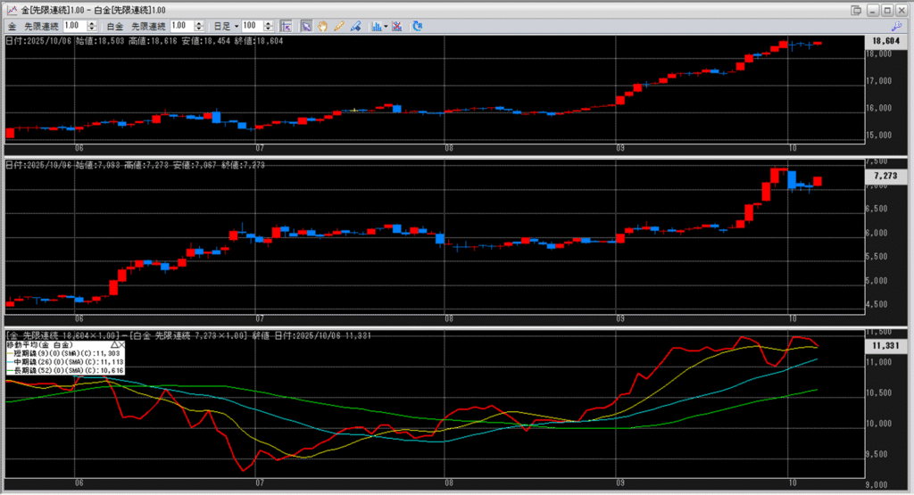 下記に金白金鞘の移動平均線のチャートを貼り付けています。