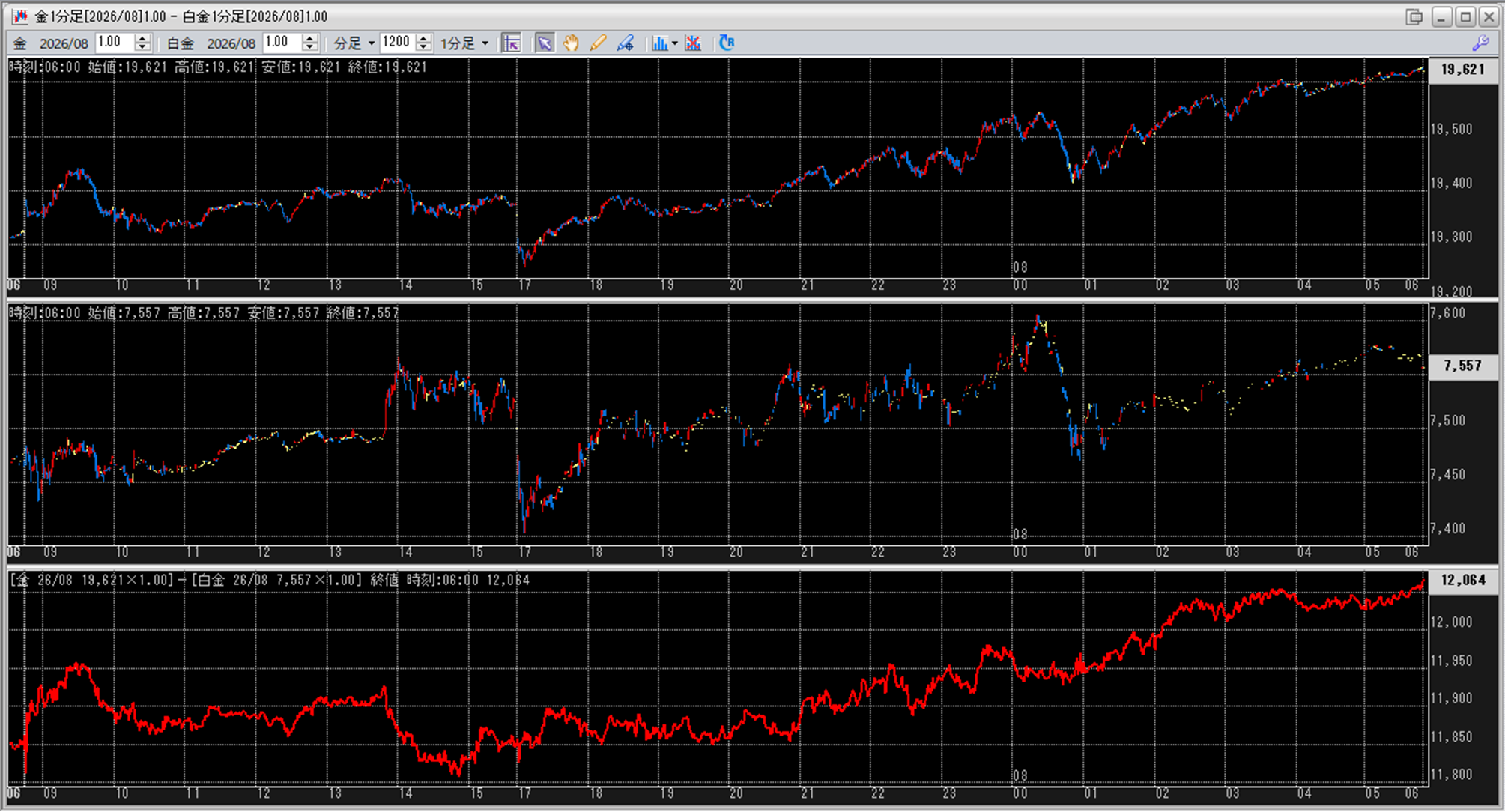 金白金鞘のチャートは、右肩上がりのチャートを維持し、