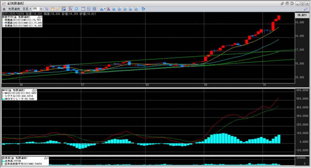 下記に金白金鞘の移動平均線のチャートを貼り付けています。