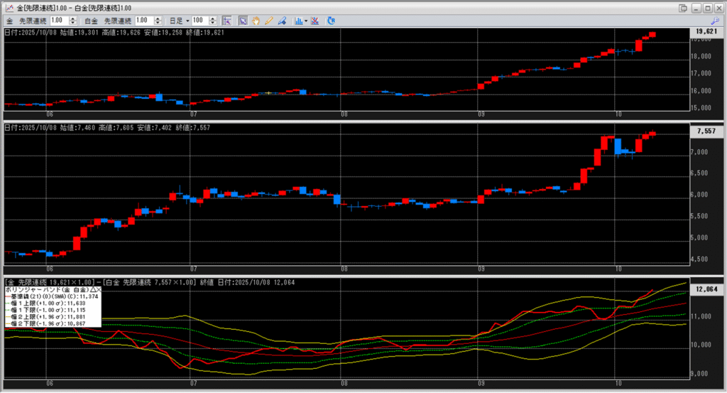 金白金の鞘をボリンジャーバンドで見ていきます。
