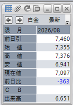 白金価格は、8,000円台を割り込み、7,000円台割れ目前まで迫ってきています。