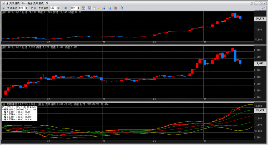 金白金の鞘をボリンジャーバンドで見ていきます。