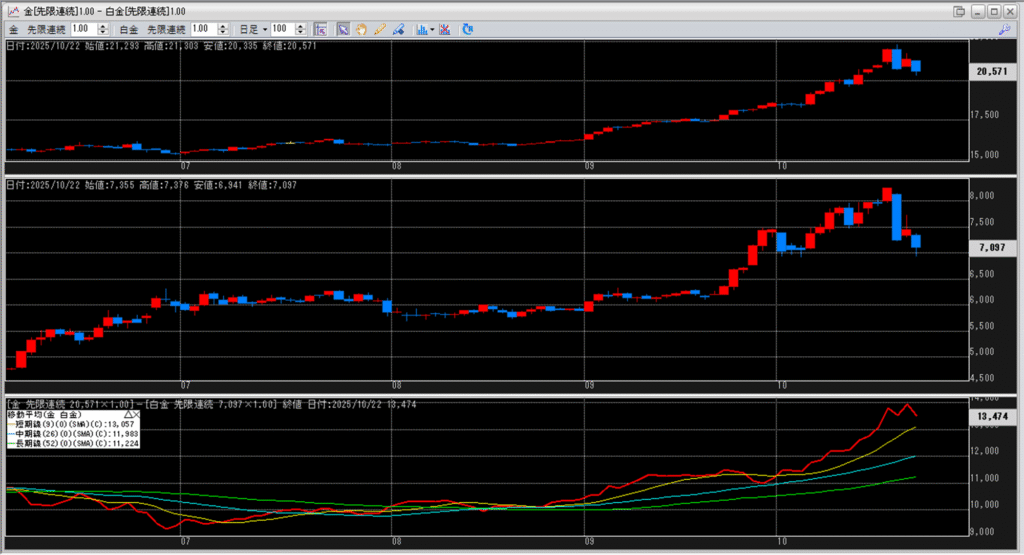 下記に金白金鞘の移動平均線のチャートを貼り付けています。
