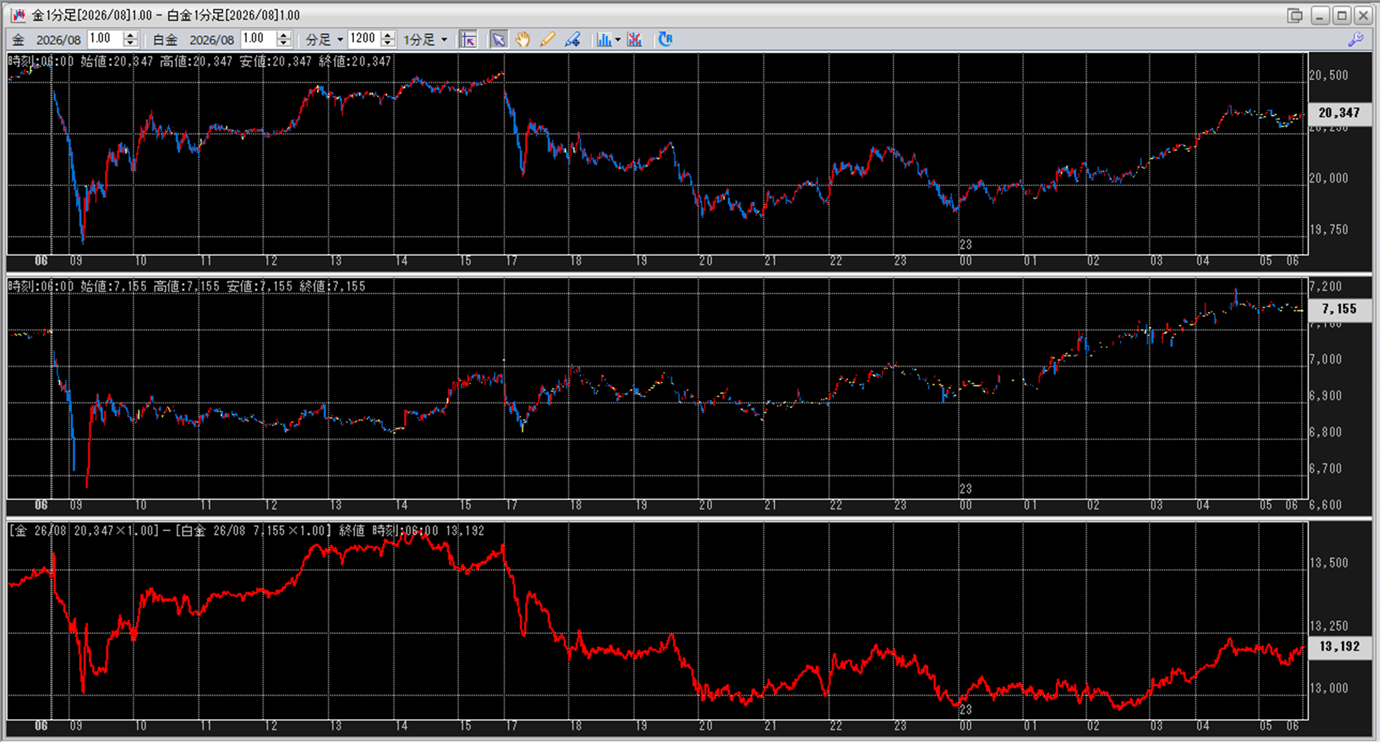 上:大阪取引所 金 2026年8月限 1分足