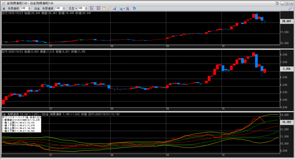 金白金の鞘をボリンジャーバンドで見ていきます。