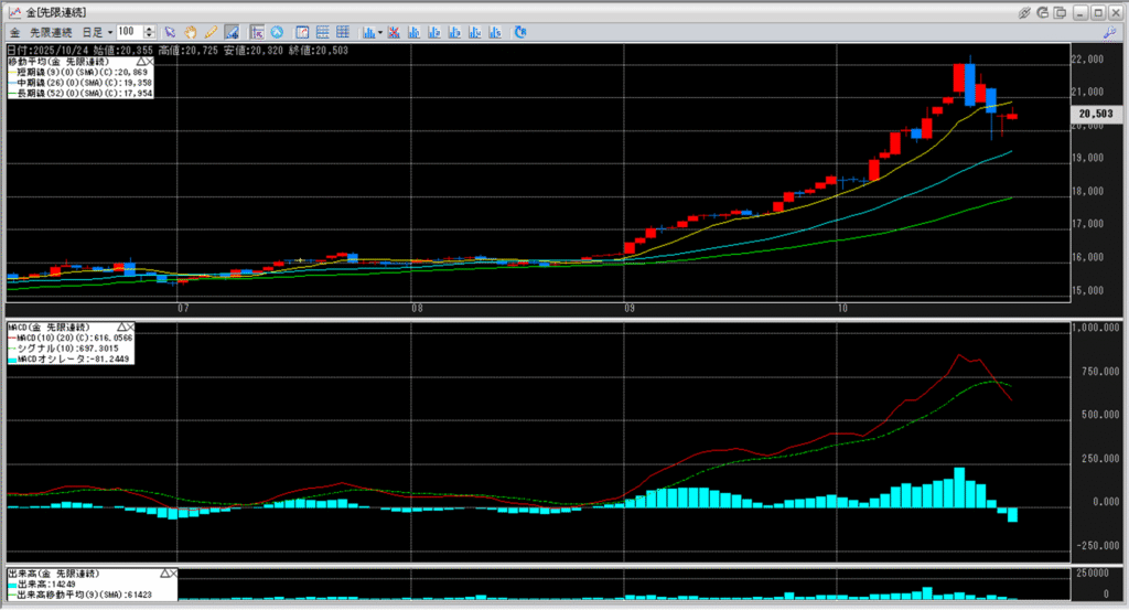 下記に金白金鞘の移動平均線のチャートを貼り付けています。