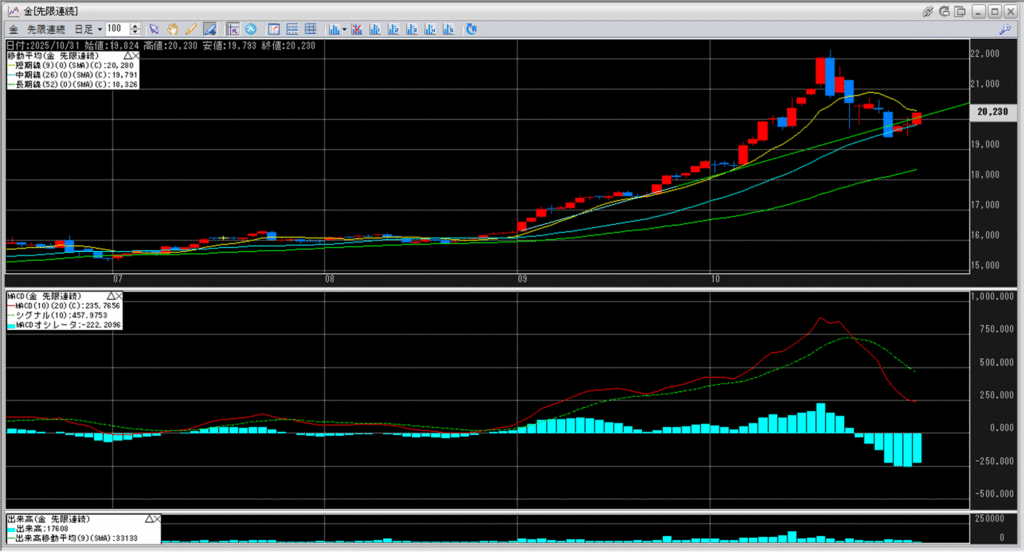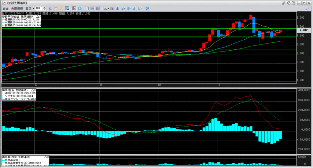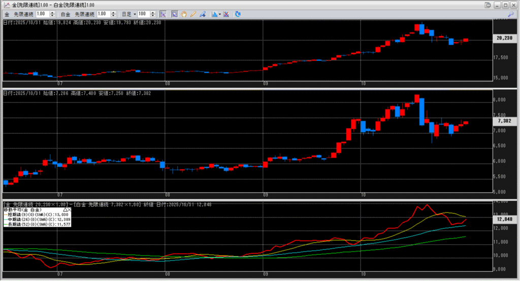 下記に金白金鞘の移動平均線のチャートを貼り付けています。