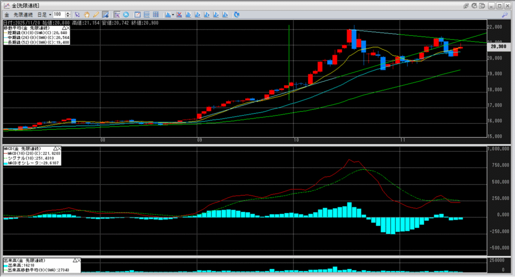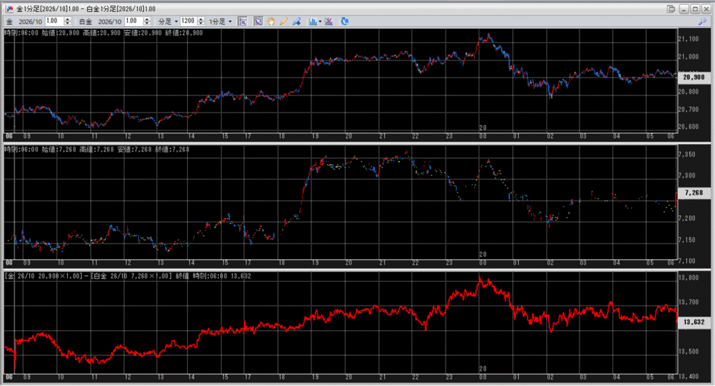 下記に金白金鞘の移動平均線のチャートを貼り付けています。