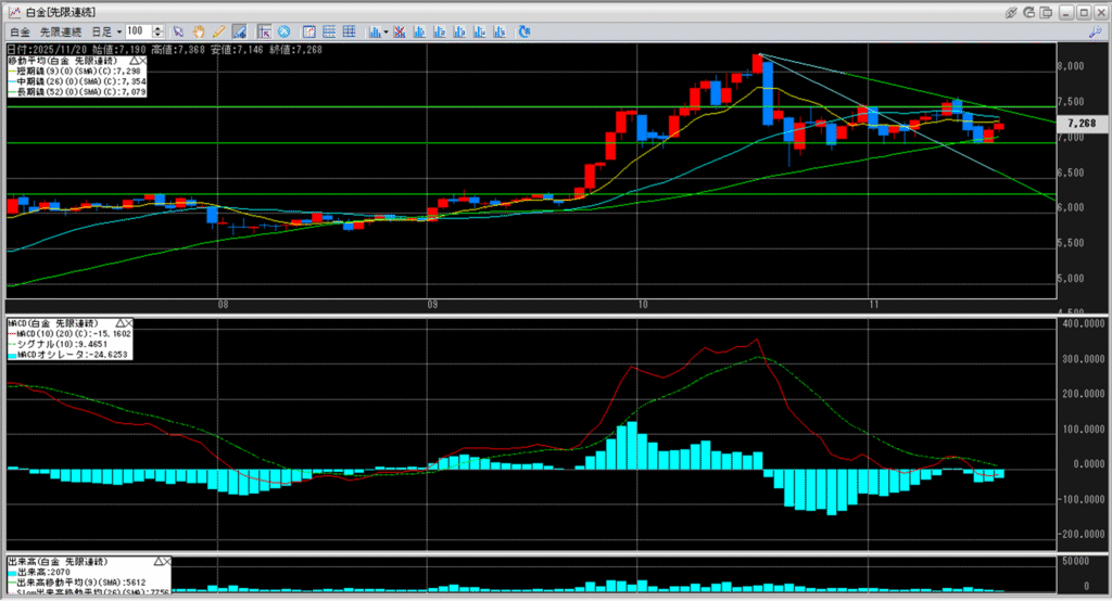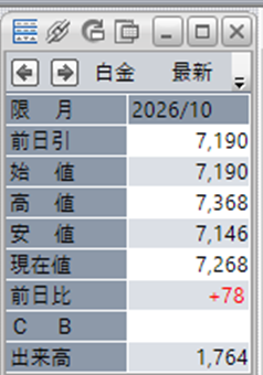 このままボックス相場の上値と思われる7,500円まで白金価格は上昇するのか。