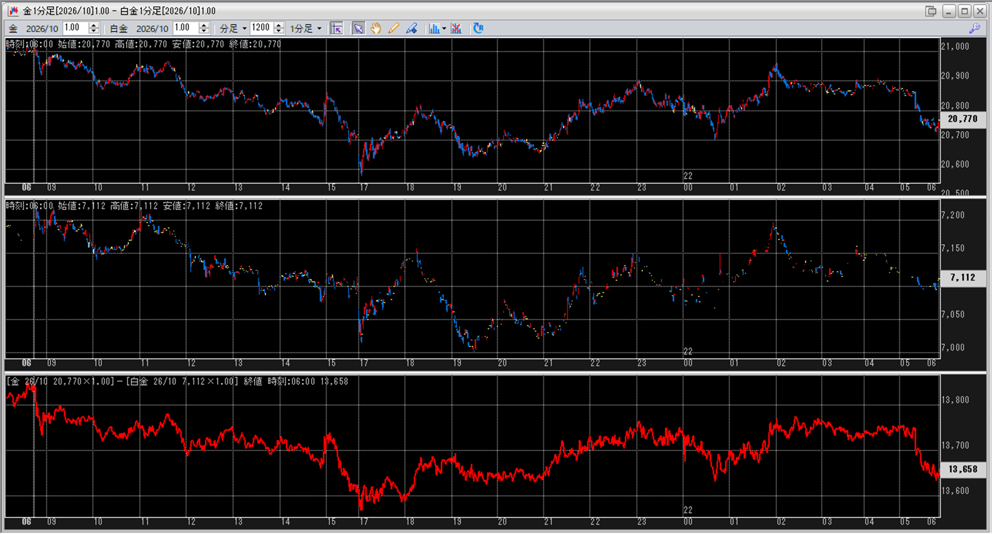 下:金白金鞘(金白金の価格差 = 金1グラムの価格 - 白金1グラムの価格)