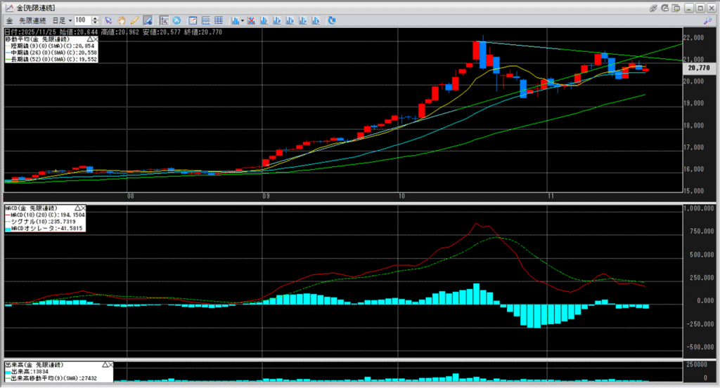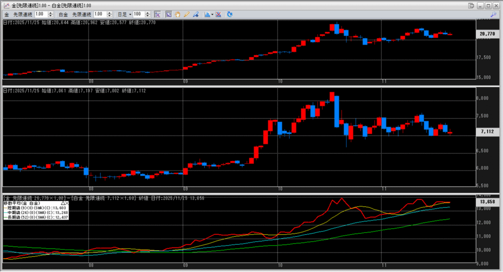 下記に金白金鞘の移動平均線のチャートを貼り付けています。