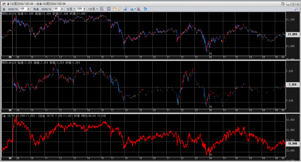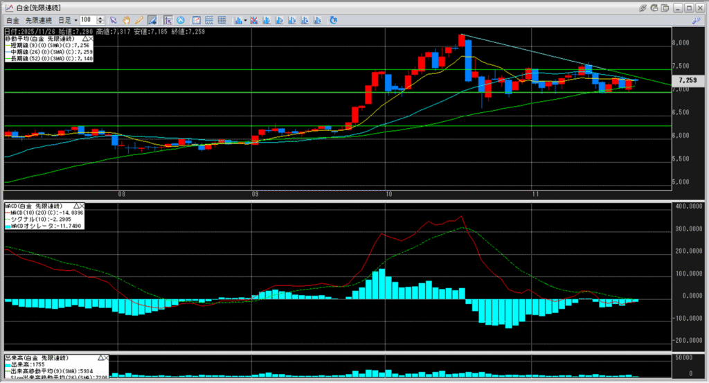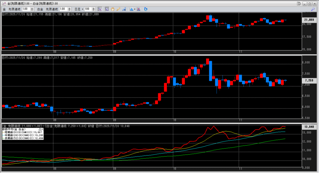 下記に金白金鞘の移動平均線のチャートを貼り付けています。