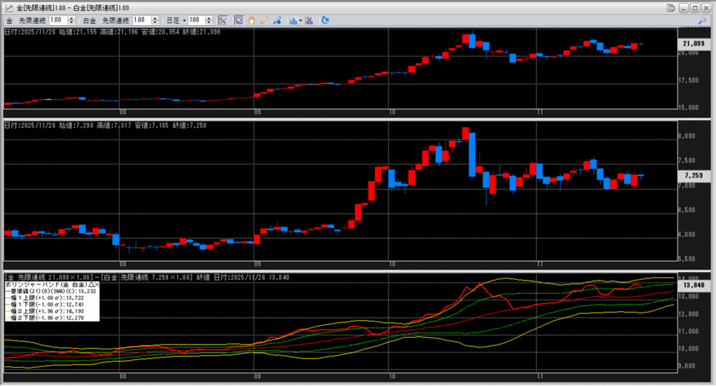 金白金の鞘をボリンジャーバンドで見ていきます。
